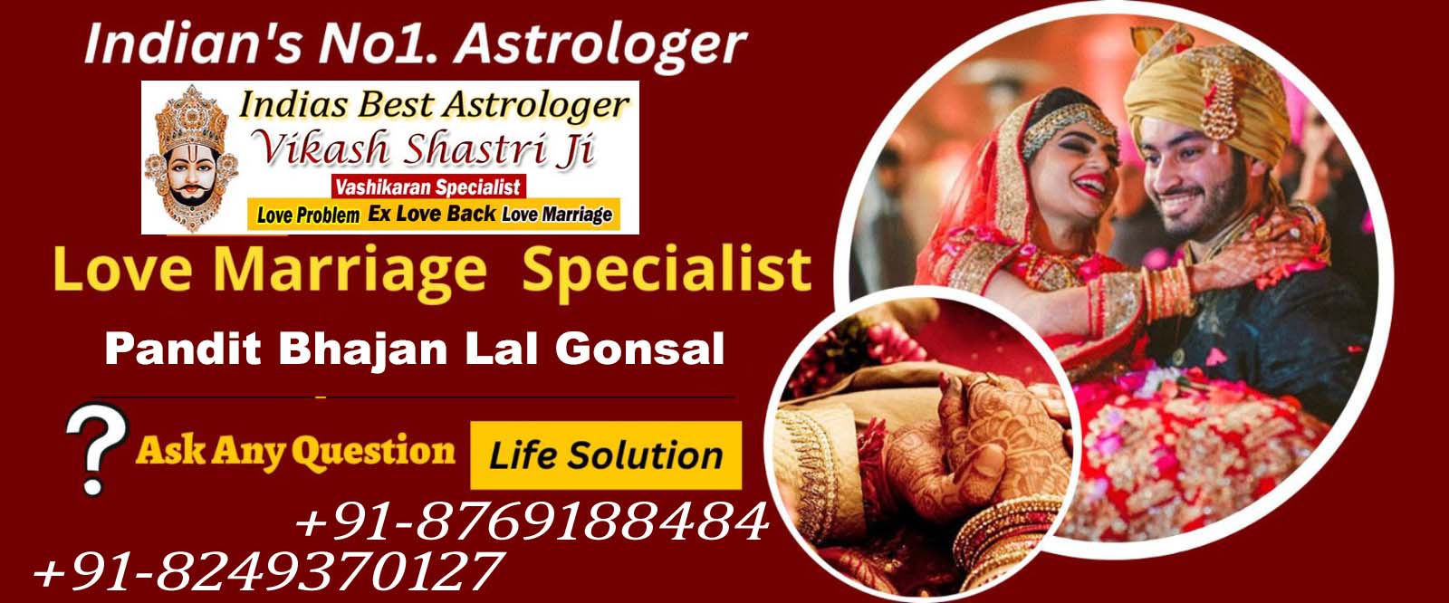 Specialist In : Love Problem, Love Marriage Specialist, Husband Wife Problem, Lost Love Back Solution, Get Ex Love Back, Divorce Problem Solution, Breakup Problem Solution, Family Problem Solution, Get Your Love Back, Relationship Solution Etc - +91-8769188484/8249370127
